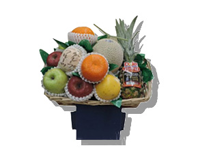 果物店 青果店 篭盛り専門店で使う包装資材のことならすべて名誠パッケージにお任せください。箱・篭・包装紙・リボン・ネットなどからシルク造花まですべてお任せください。名入れにより、オリジナル制作も可能です。小ロットでの詰め合わせも致します。
