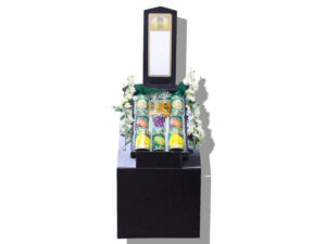 単価(税込)¥1650 弊社オリジナルの仏事用御供台です。 リサイクルの出来る段ボールになっております。 缶詰めの御供セットでも耐久性が高いです。 表面のシートは黒ベタに金色の点がちりばめてあるシートが貼り付けてあるので高級感があります。 造花を付ける為、側面3箇所ずつ結束バンドが使える様に穴をあけてあります。 本体サイズ 横44㎝奥行き35㎝×高さ83㎝